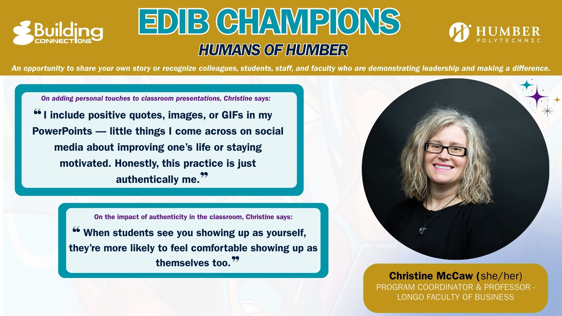 We invite everyone to take a moment today to recognize and celebrate the EDIB Champions and Humans of Humber who are advancing equity, diversity, inclusion, and belonging across our community!
