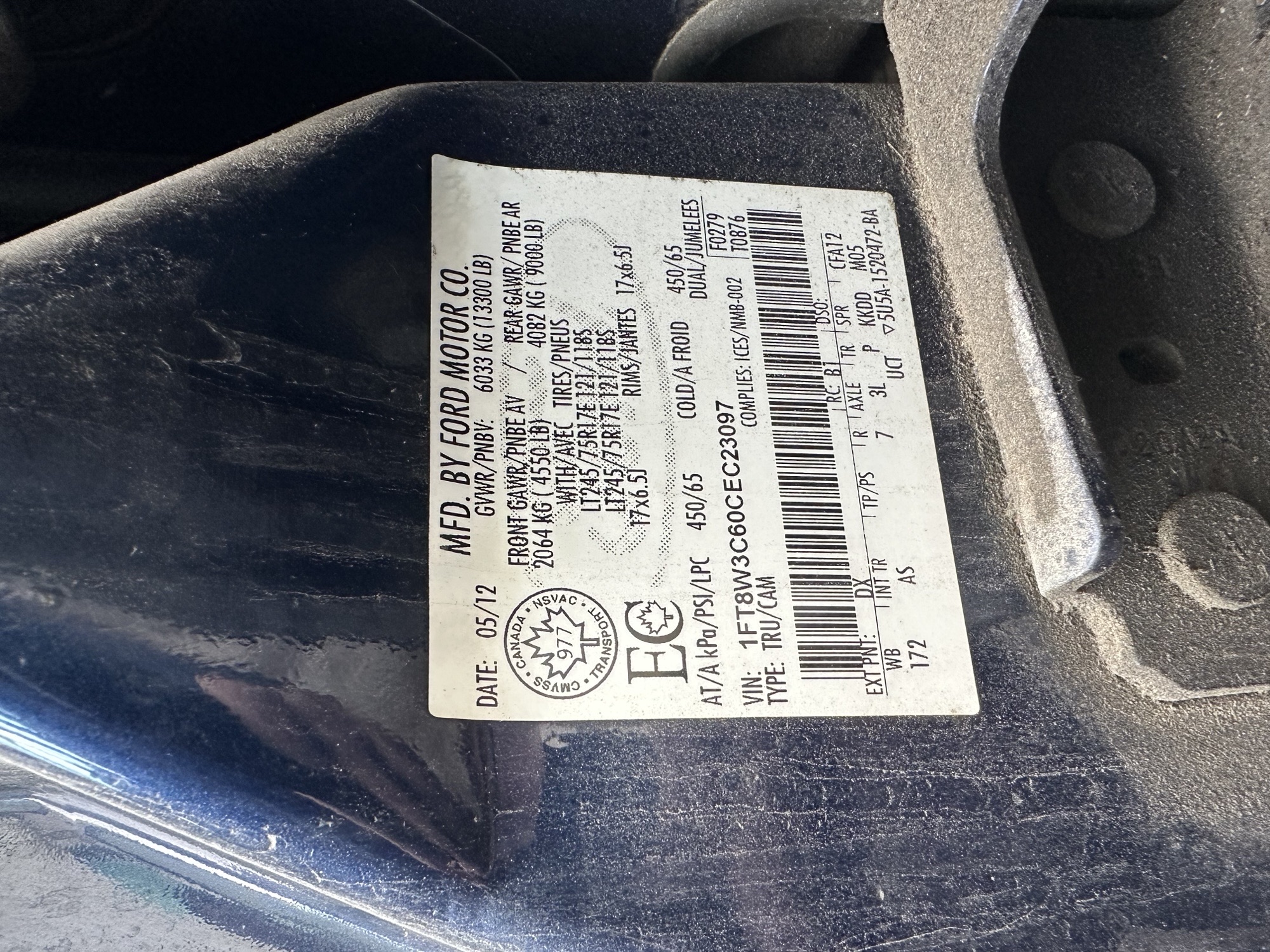 VIN/Serial #: 1FT8W3C60CEC23097