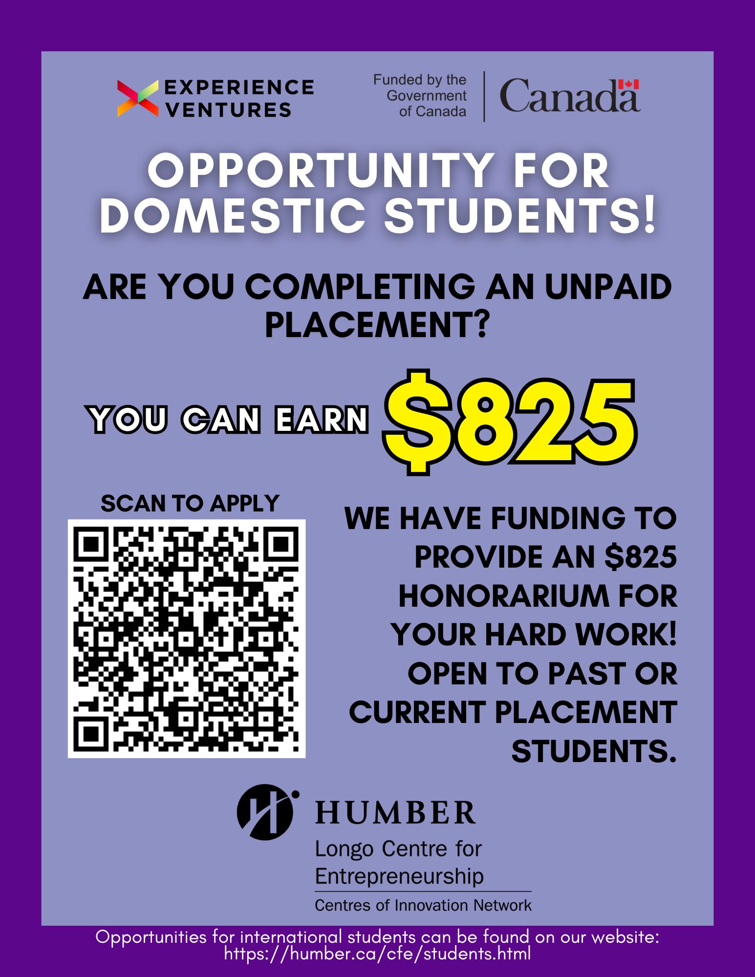 Do you know any students in an unpaid placement? Please share this first-come, first-served opportunity with your students!