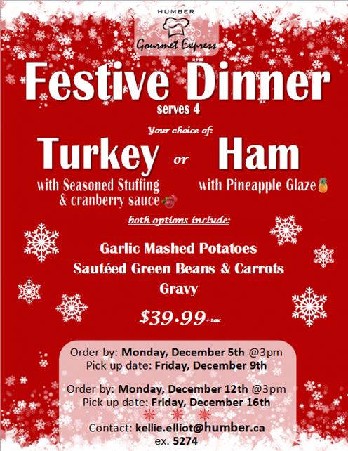 $39.99 Order by: Monday, December 5 at 3 p.m. Pick up date: Friday, December 9 Order by: Monday, December 12 at 3 p.m. Pick up date: Friday, December 16 Contact: kellie.elliot@humber.ca or 416.675.6622 x5274.