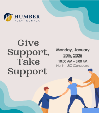 Join us to kick-off Humber Let’s Talk by participating in our activities today. Come explore practical strategies for self-care and take a moment to de-stress with some cute therapy puppies. There will be tons of prizes, snacks, and free giveaways!